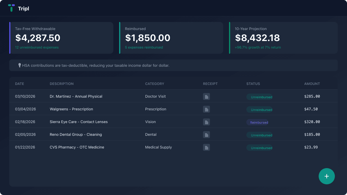 AI-powered HSA expense tracker. Receipt scanning, FIFO reimbursement, growth projections, tax year reports. I had an oh-shit moment with Claude Code and built the whole thing solo.